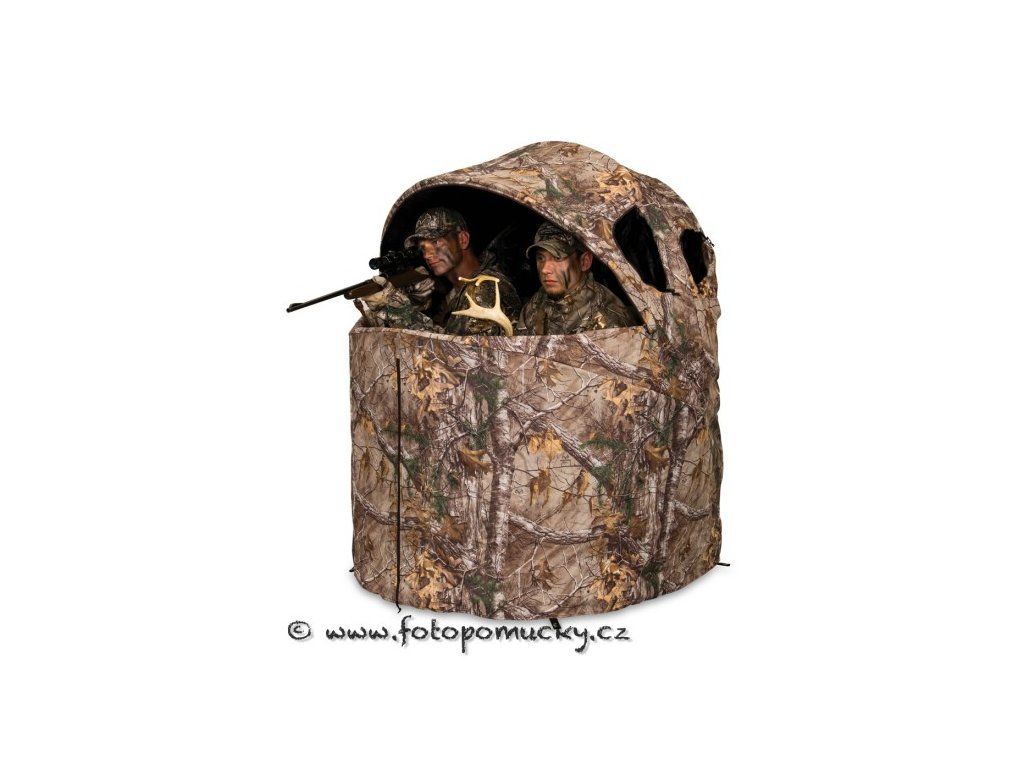 Kombinace lovecké židle a stanu pro dva lovce. Na povrchu je maskovaný vzor RealTree Xtra, uvnitř je černá barva, která eliminuje stíny a siluety. Vepředu je zip, kterým se dá tento díl rozepnout a vypustit psa nebo fotografovat. Po stranách jsou dvě vnitřní kapsy na drobné vybavení. Složení a rozložení stanu zabere několik sekund. Židle se přenáší složená v batohu na zádech. Pro lov, fotografování nebo pozorování je vhodné v okolí židle rozmístnit balabány.