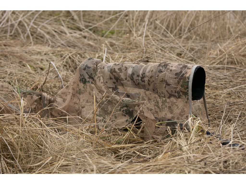 Maskovací přehoz/šátek je vyrobený z kombinovaných materiálů 50% bavlna a 50% polyester. Z jedné strany je potištěný maskovacím vzorem, který se hodí do suchých oblastí, suché trávy nebo rákosí. Z druhé strany je jednotný světlý potisk. Může být použitý několika různými způsoby - např. jako maskování obličeje, fototechniky, obalením těla fotoaparátu se tlumí zvuk uzávěrky atd. Sešitím více šátků vznikne velká maskovací síť.