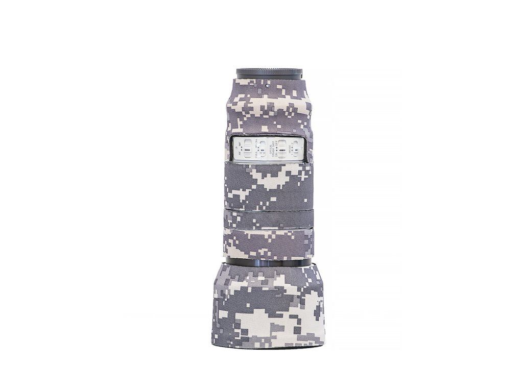 LensCoatTM Sony FE 70-200mm f4 G OSS poskytuje objektivu ochranu před poškrábáním a dalším poškozením způsobeným běžným používáním. Tlumí zvuky a v chladném počasí chrání ruce fotografa před studeným kontaktem s kovovými částmi objektivu. Maskovací vzor snižuje viditelnost bílého objektivu před zvěří a tak umožňuje získat neopakovatelné záběry divokých zvířat. V méně bezpečných oblastech snižuje nežádoucí pozornost k drahému objektivu. Návlek je vyroben ze 100% neoprénu. Kryje objektiv a má plastická okna na autofokusu a měřiči vzdálenosti. Na konci objektivu je malé vybrání nad červeným indikátorem, který usnadňuje spojení objektivu s fotoaparátem. Návlek je možno snadno navléknout a sejmout.